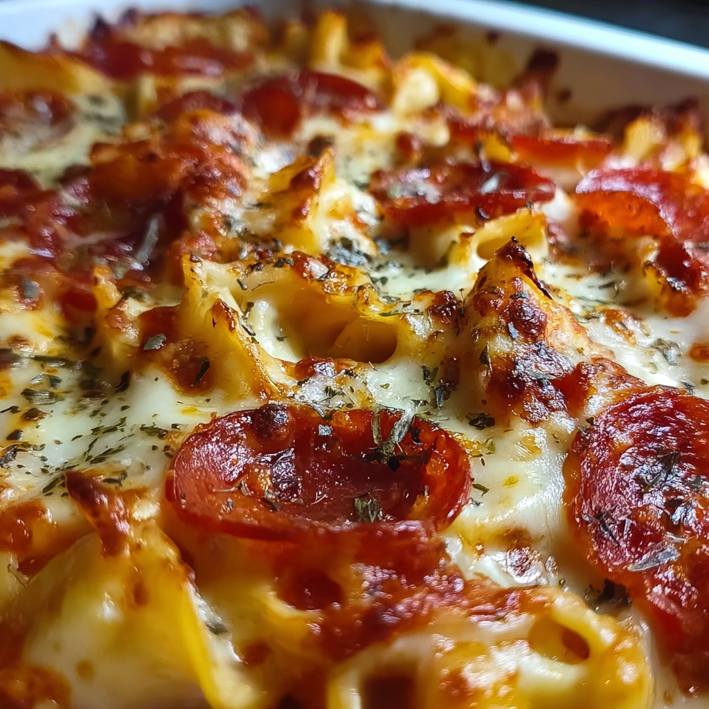 Cheese Tortellini Pepperoni Pizza Casserole Delight