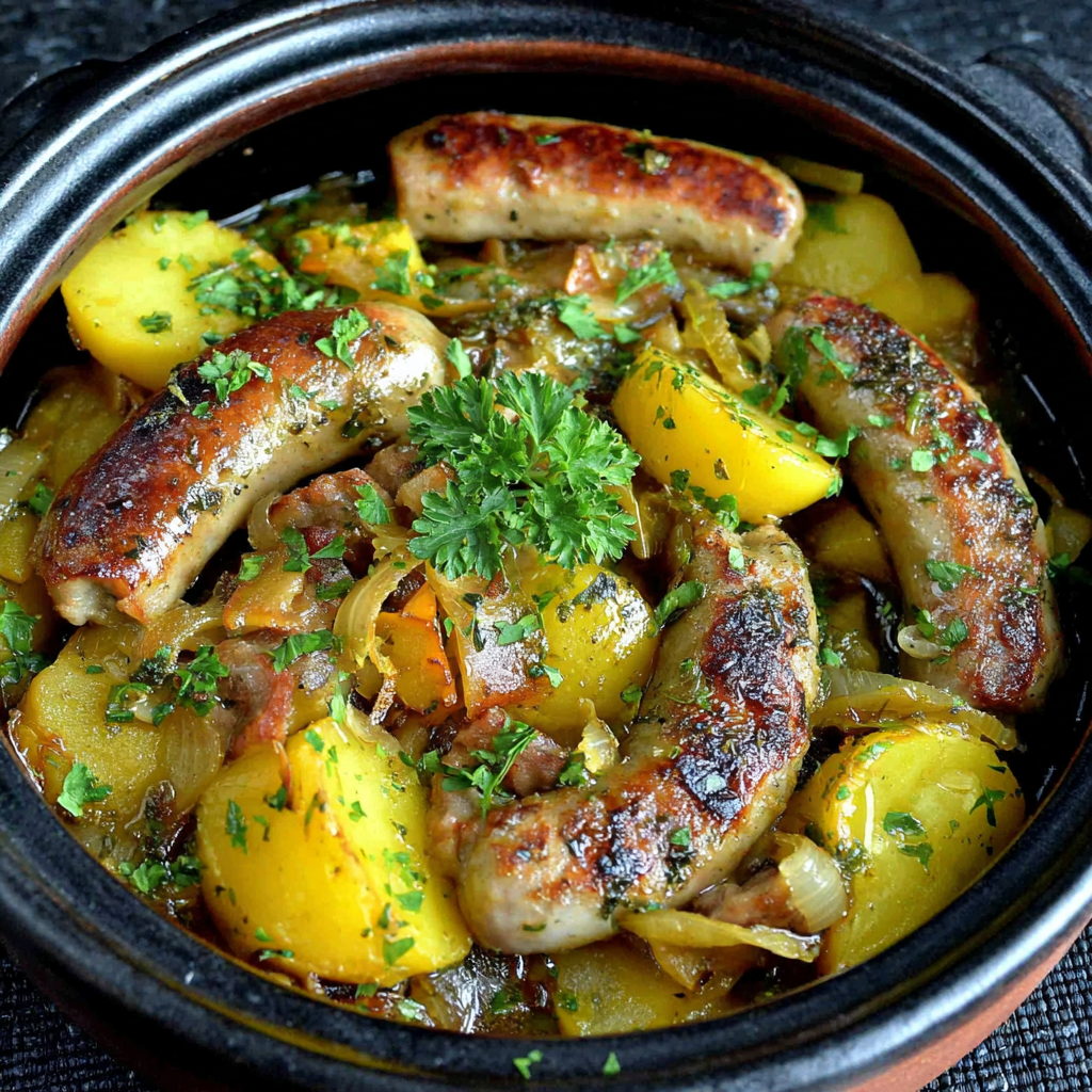 Use good-quality pork sausages, as they impart a wonderful taste and heartiness to the dish. The variance in seasoning of the sausage can adapt the flavor profile and add complexity. - 4 medium potatoes, peeled and sliced