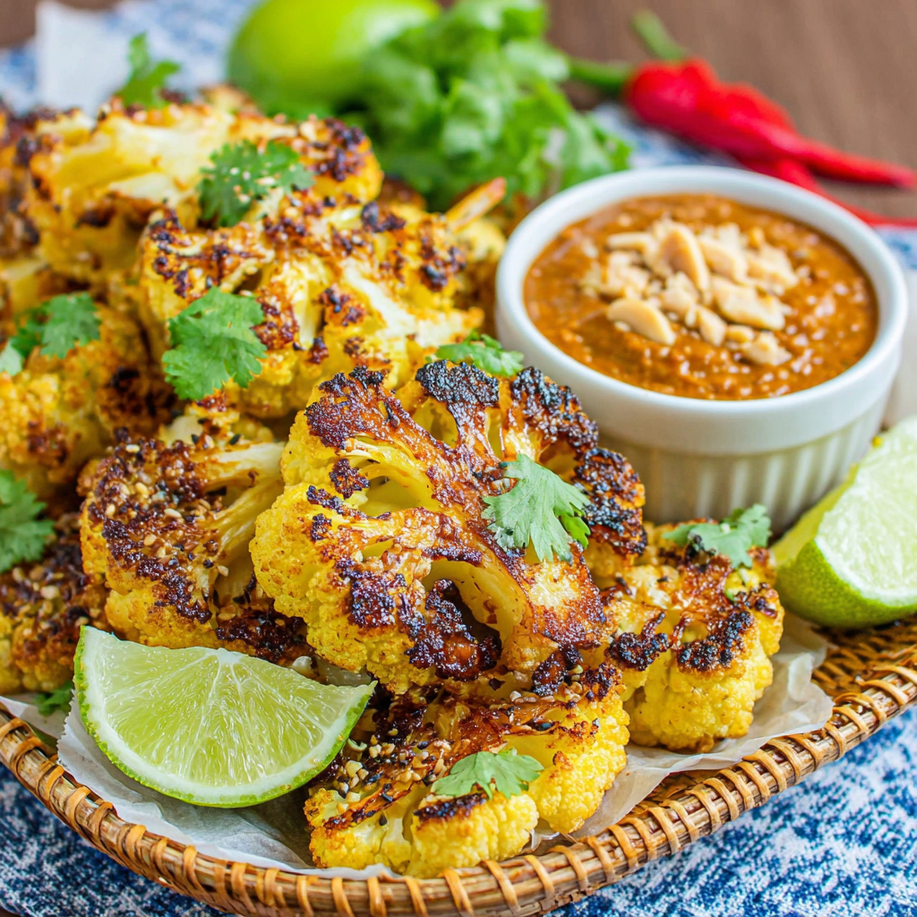 Roasted Cauliflower Satay with Spicy Peanut Dipping Sauce